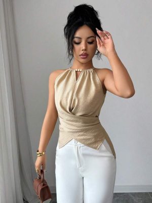 MOD Women’s Elegant Solid Color Versatile Halter Neck Top, Summer