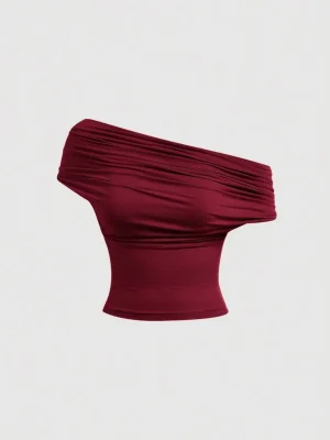 Privé Women’s Elegant Pleated Fabric Front Hollow Out Pleated Halter Top Fashion