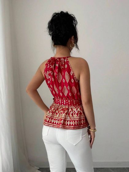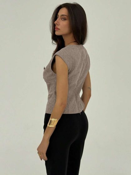 Elenzga Metallic Pleated Cap Sleeve Blouse