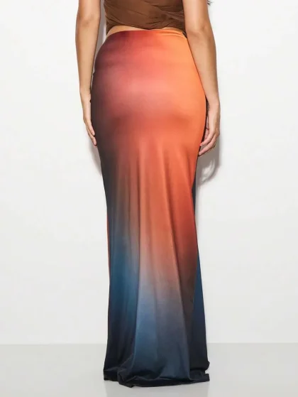 KIZN Designer Sunset Ombre Satin Maxi