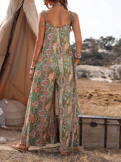 Embroidered Off-Shoulder Vacation Jumpsuit