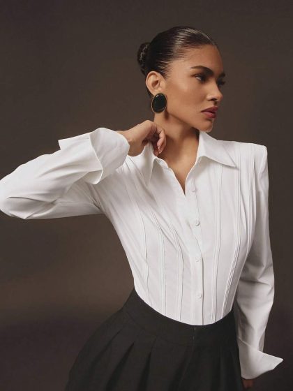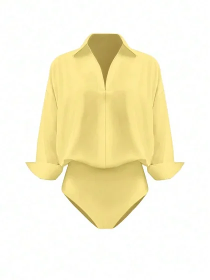 Hauture Old Money Office Long Sleeve Boned Shirt Bodysuit