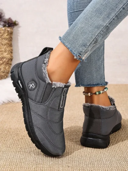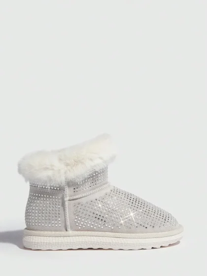 Women’s Comfortable And Warm Beige Snow Boots With Diamond Decoration