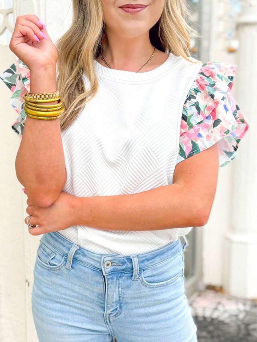 Be the first to review “Acelitt Abstract Ruffle Knit Top”