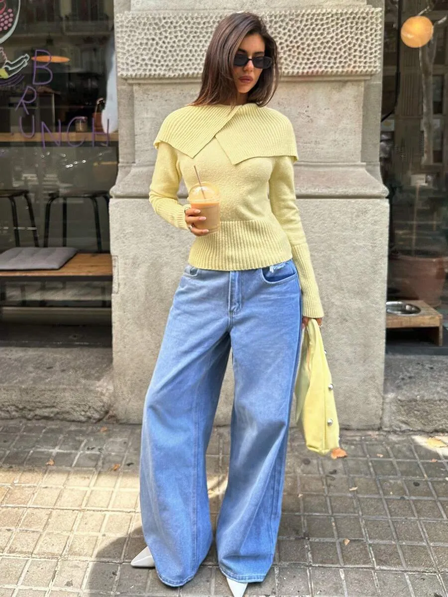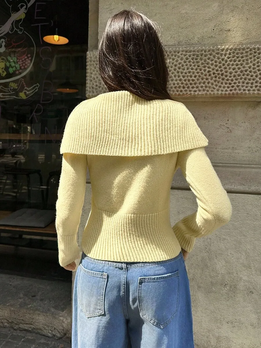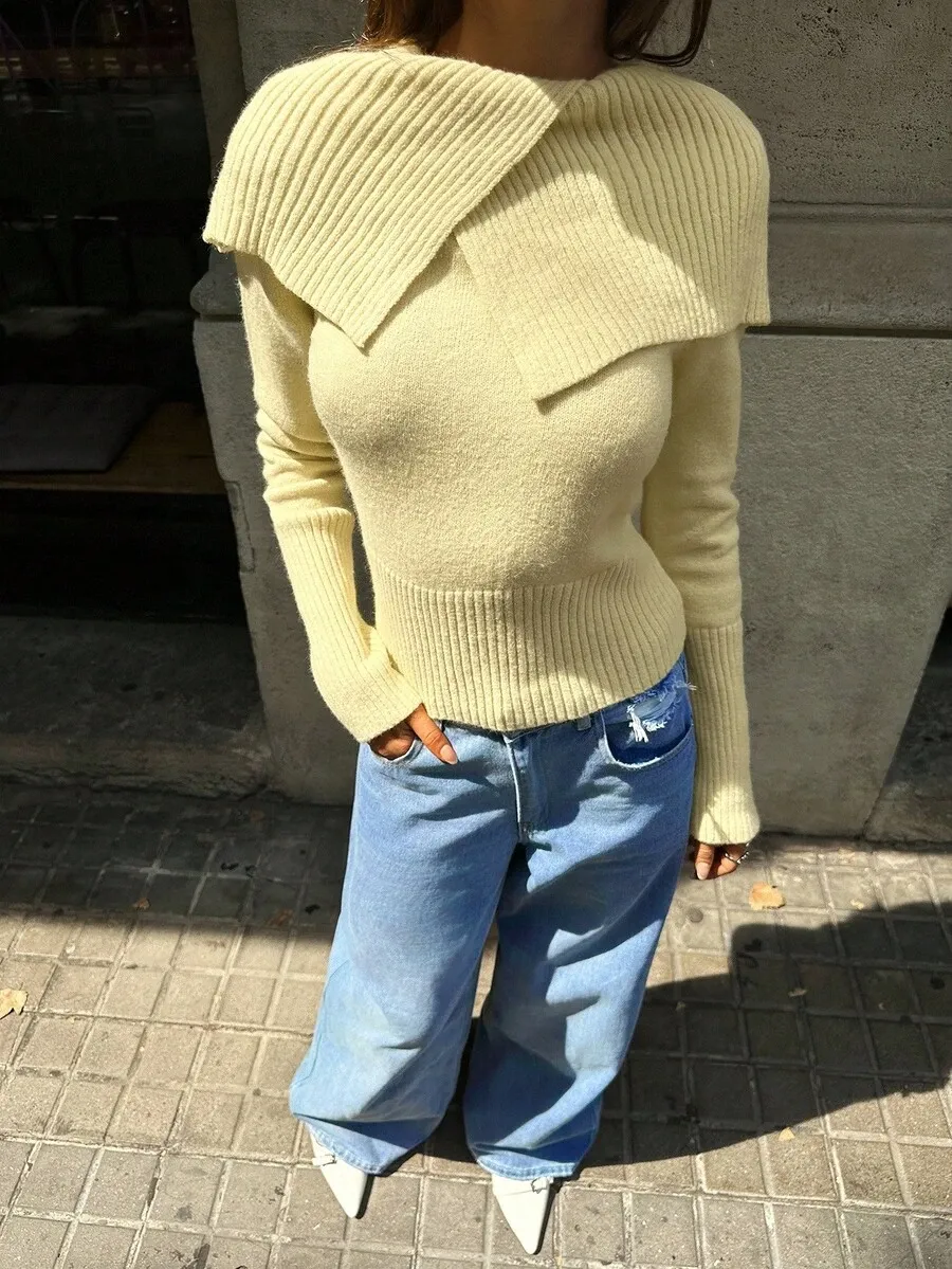 Aloruh Yellow Turtleneck Fitted Long Sleeve Sweater