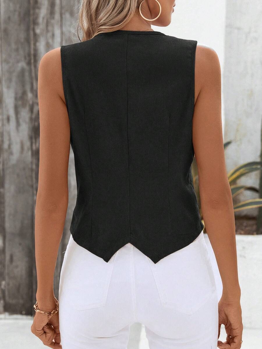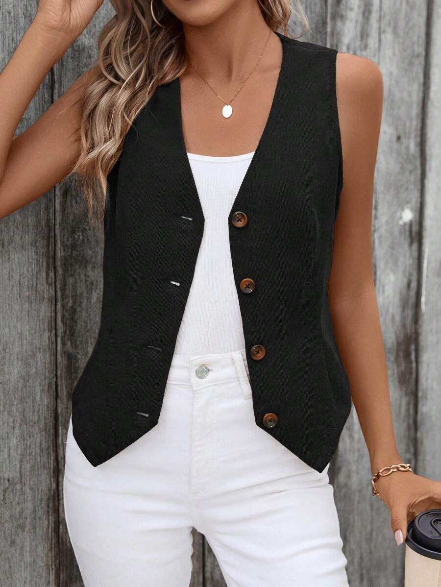 Black Corduroy Button-Front Vest Blazer