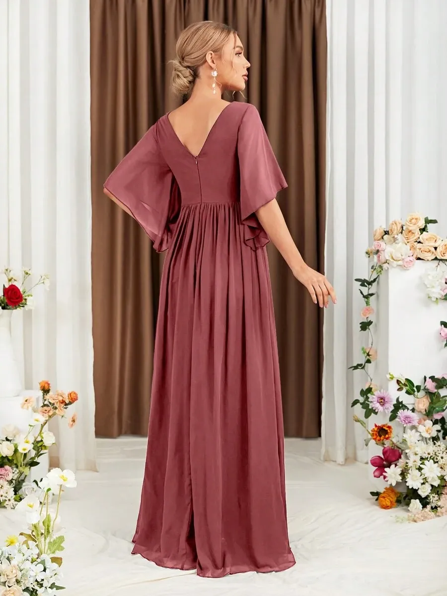 Be the first to review “Butterfly Sleeve Split Thigh Chiffon Dress”