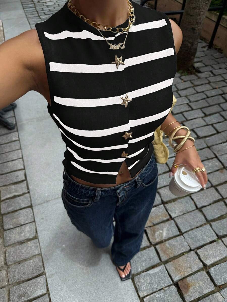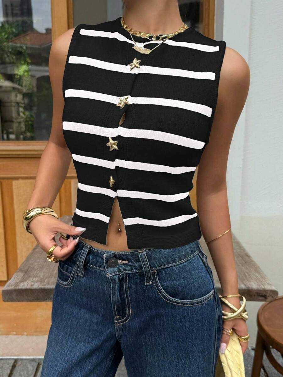 Comfortcana Striped Crop Knit Vest