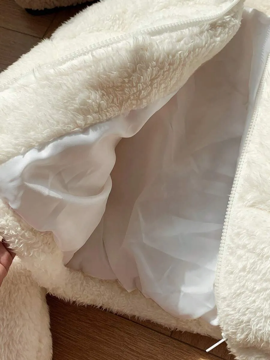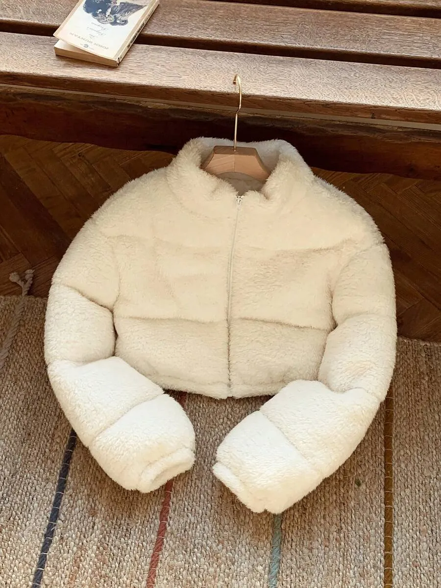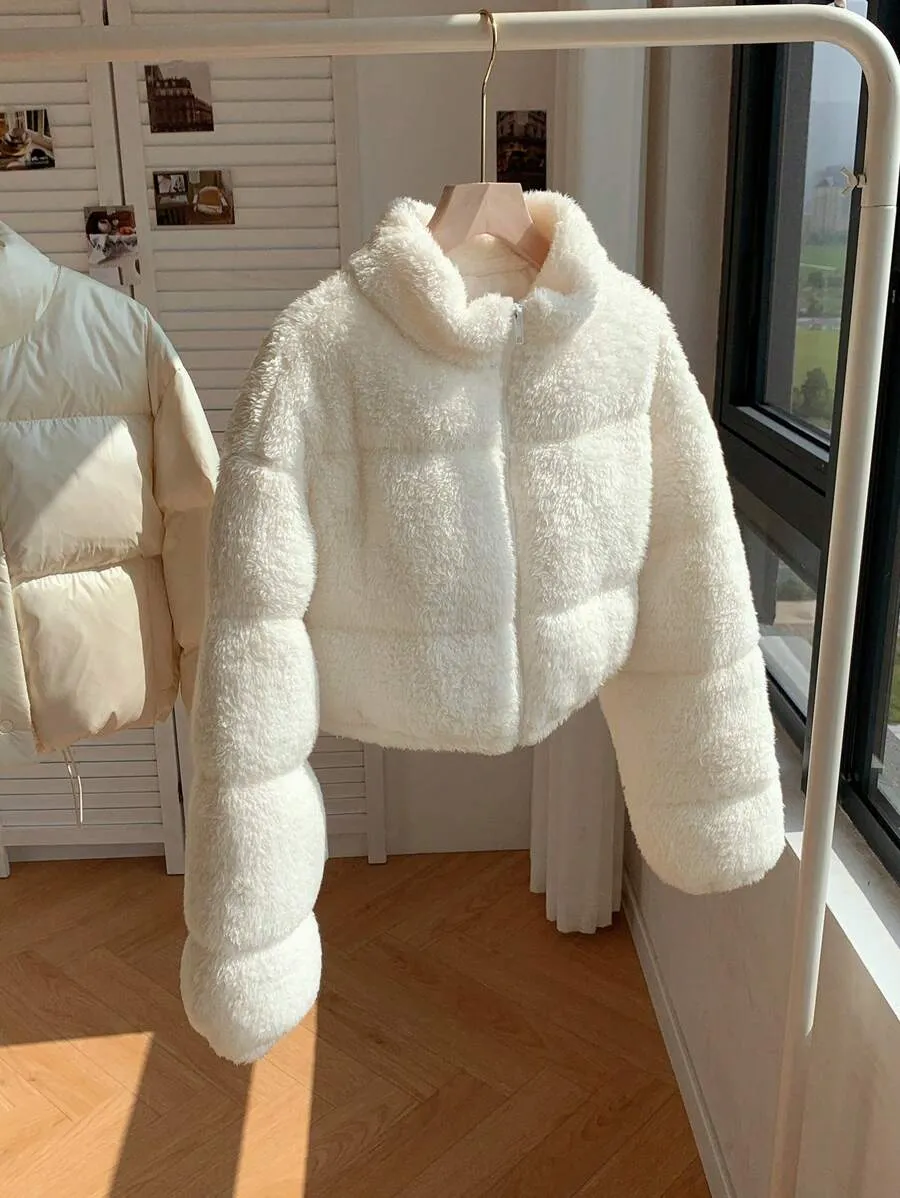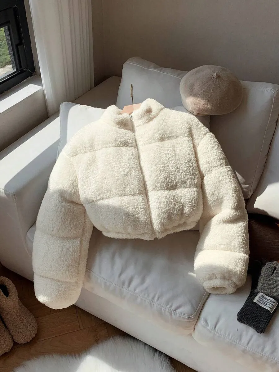 Comfortcana Women’s Faux Shearling Cropped Puffer Jacket – Winter