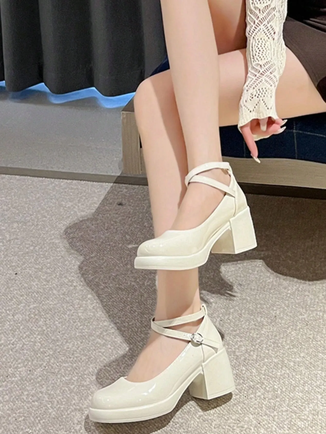 Be the first to review “DareSee Mary Jane Buckle High Heel Shoes (White)”