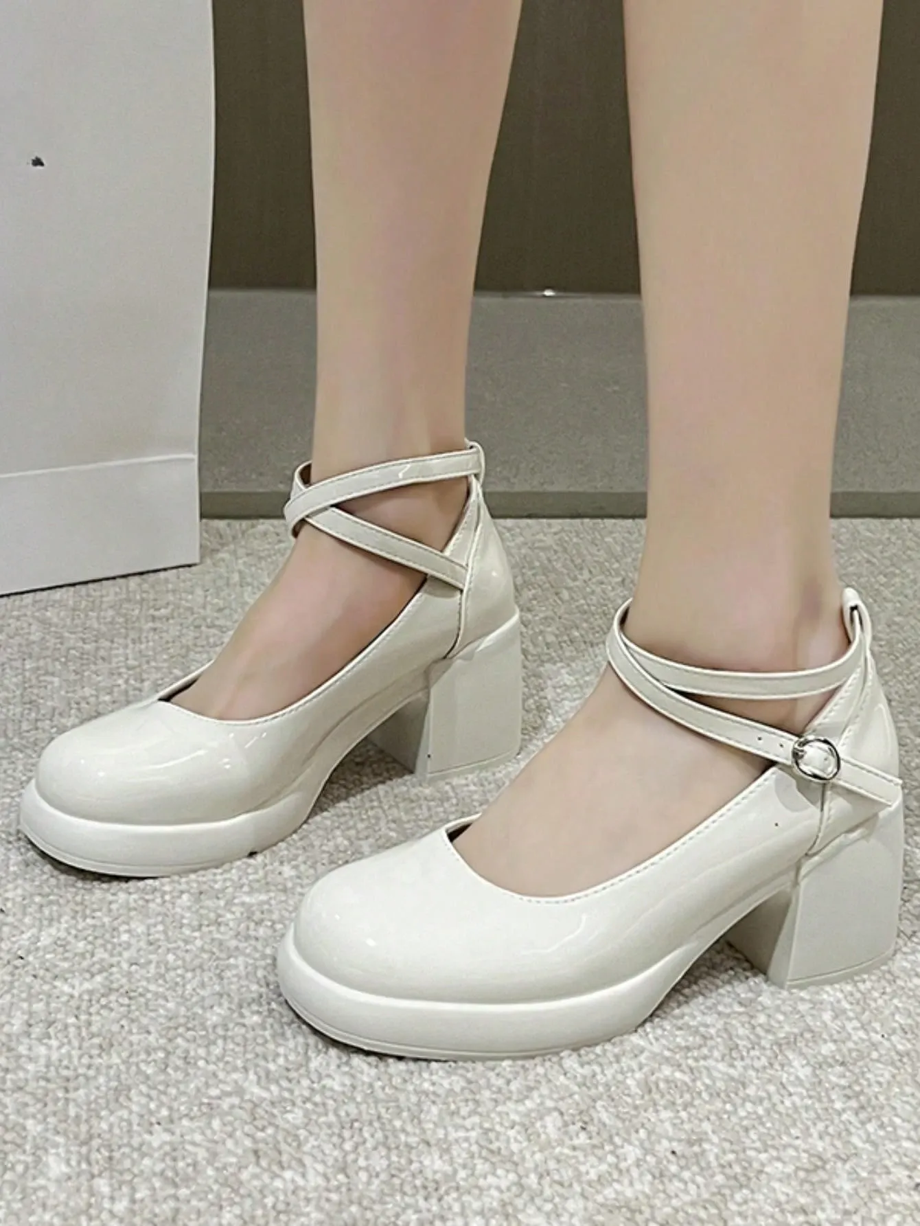 DareSee Mary Jane Buckle High Heel Shoes (White)