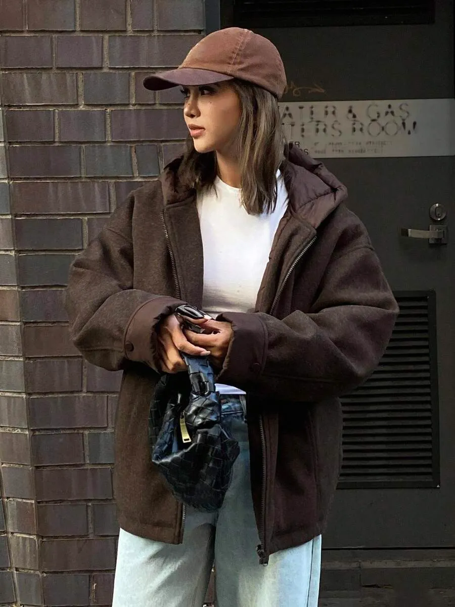 DAZY Women’s Solid Color Hooded Zip-Up Winter Jacket