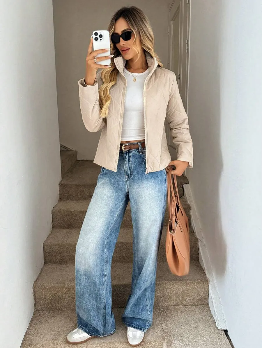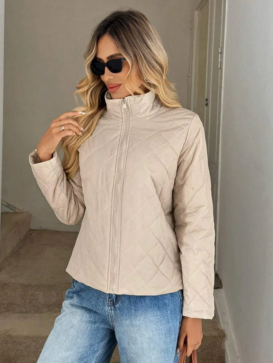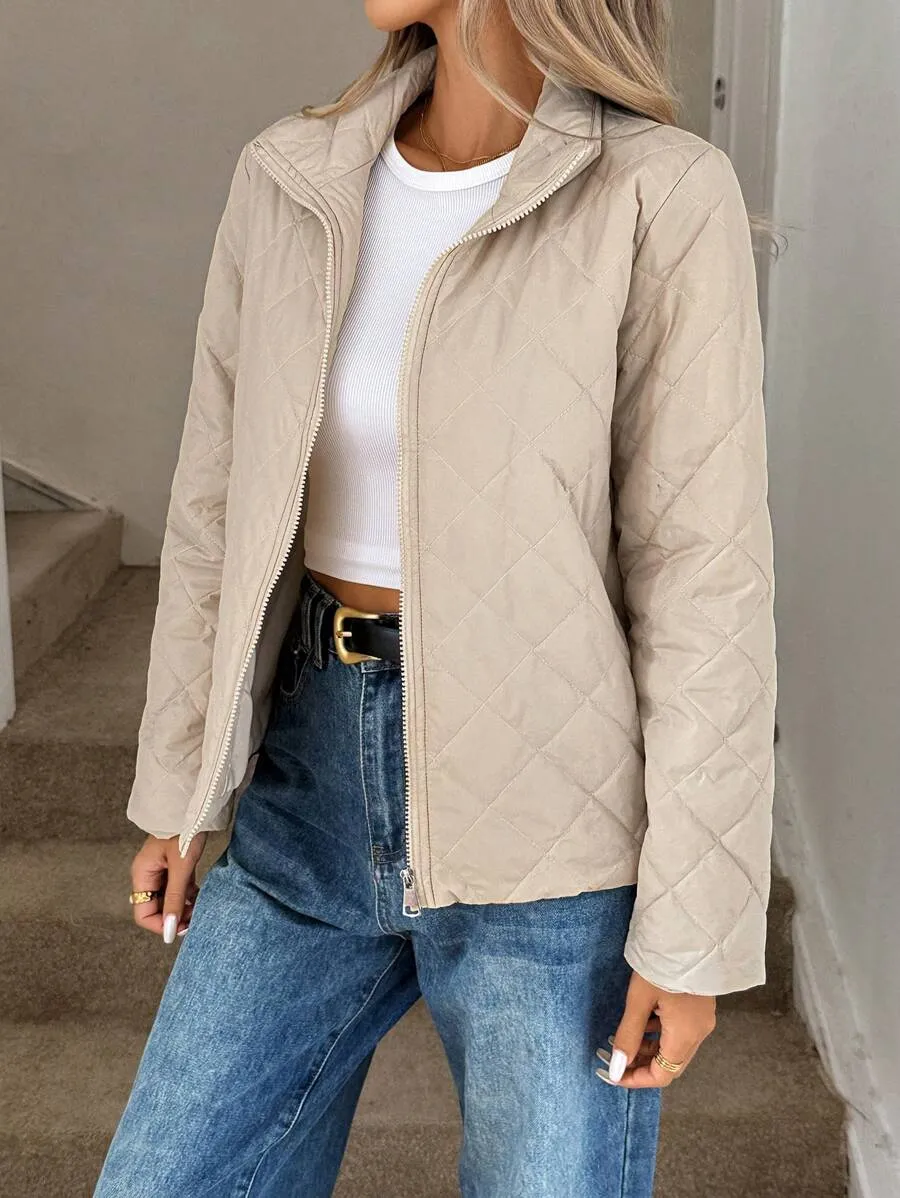 Easowa Women’s Diamond Quilted Zip-Up Jacket – Fall/Winter