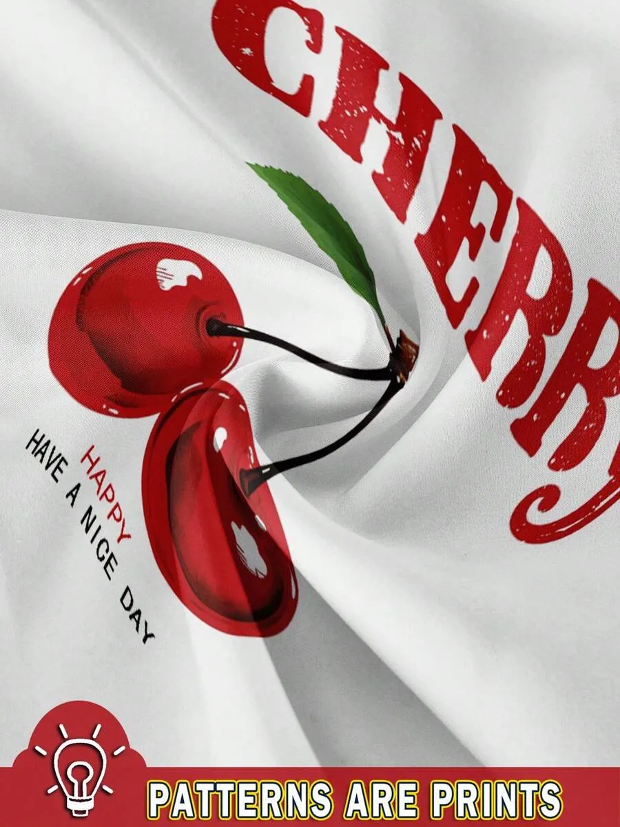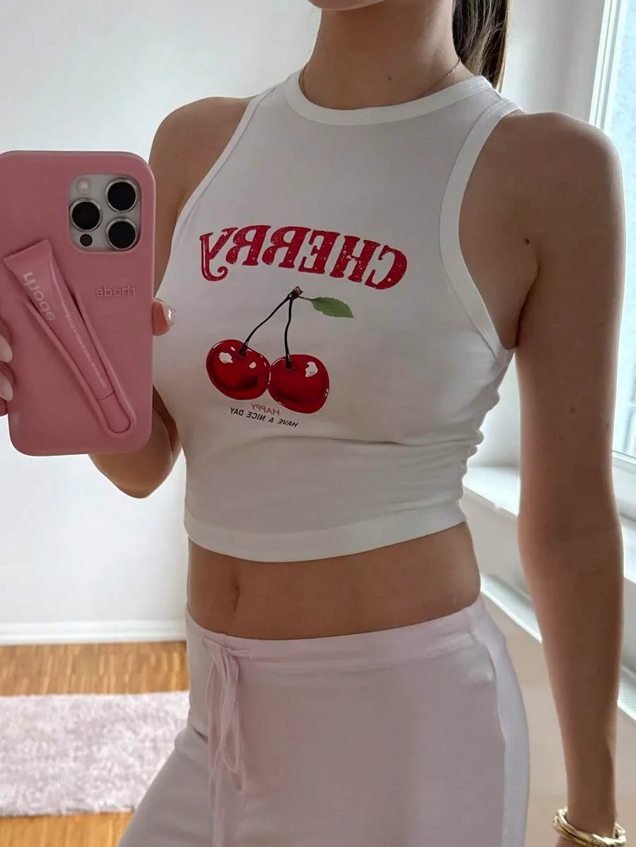EZwear Casual Cherry Pattern White Slim Fit Women’s Tank Top