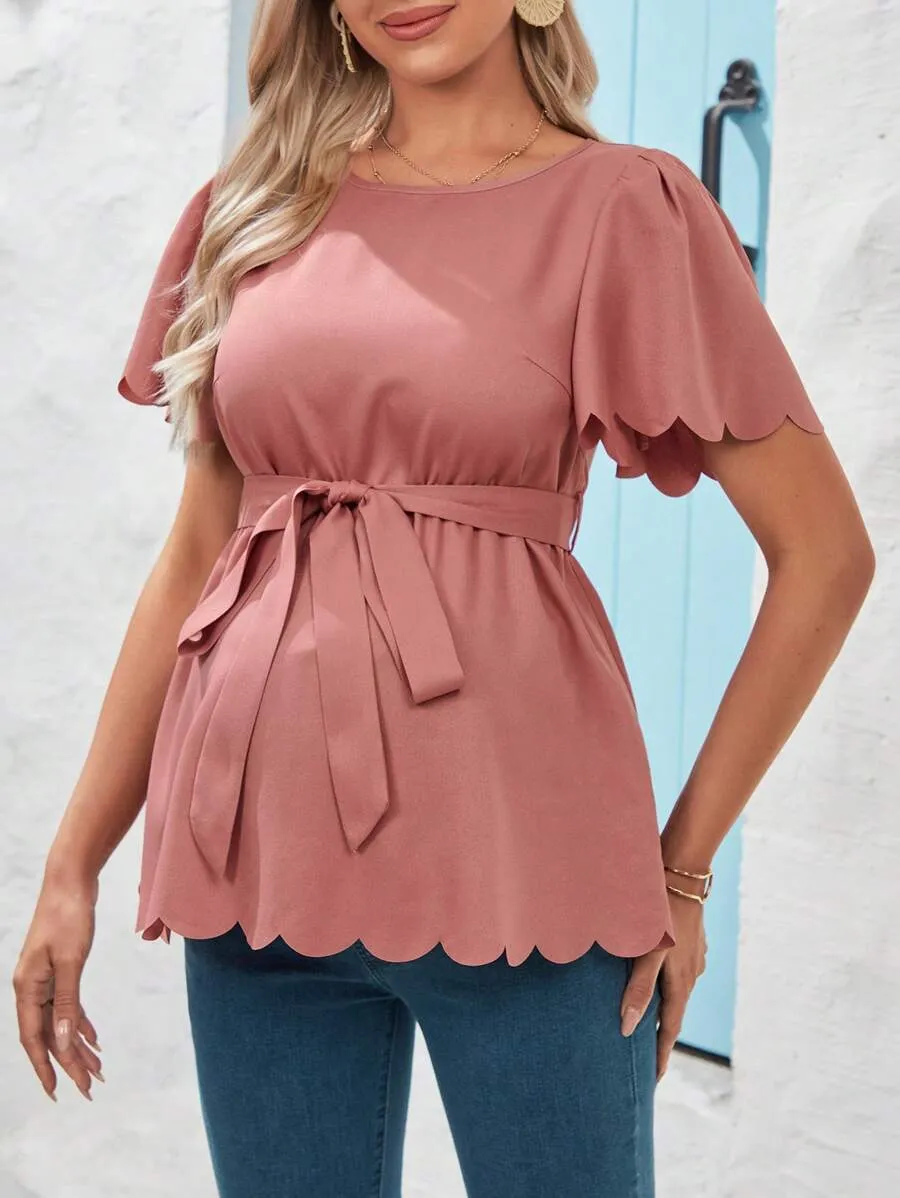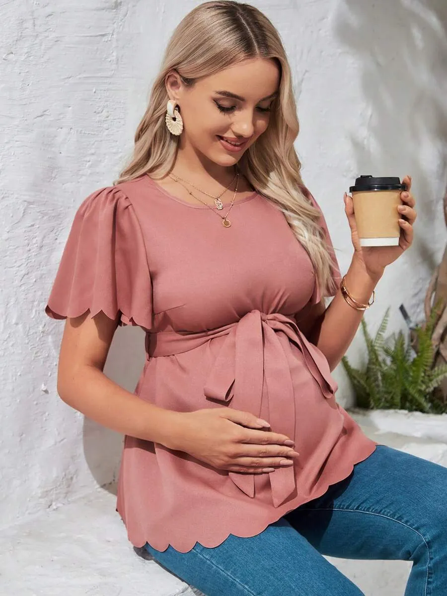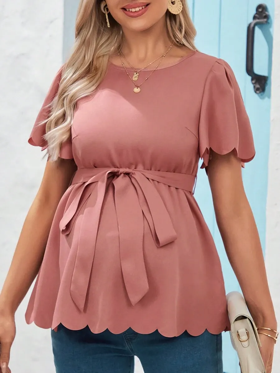 Maternity Casual Flared Short Sleeve Shirt With Shell Bottom Hemline