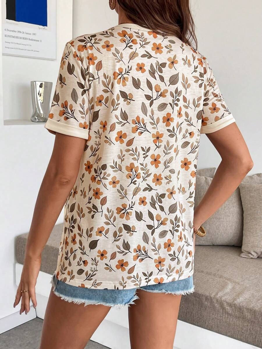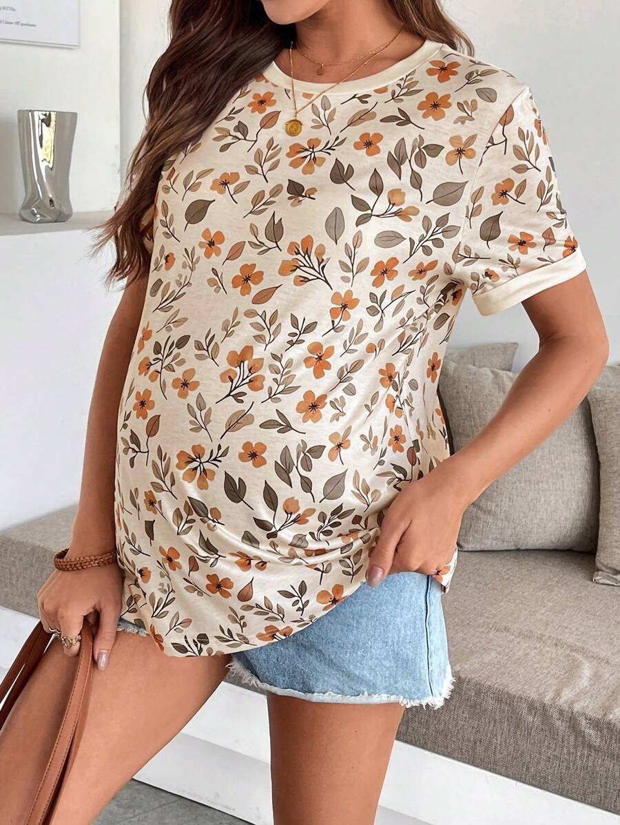 Maternity Floral Print Round Neck T-Shirt