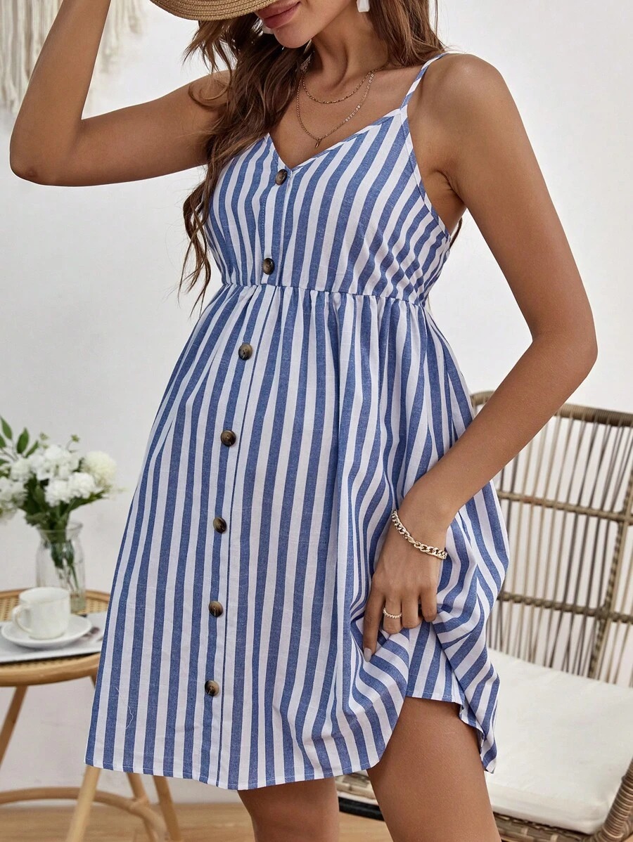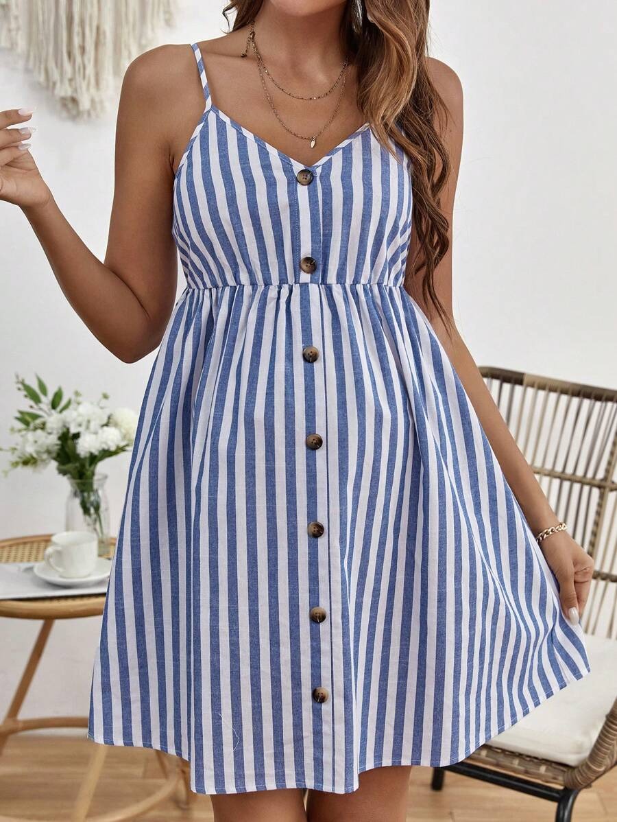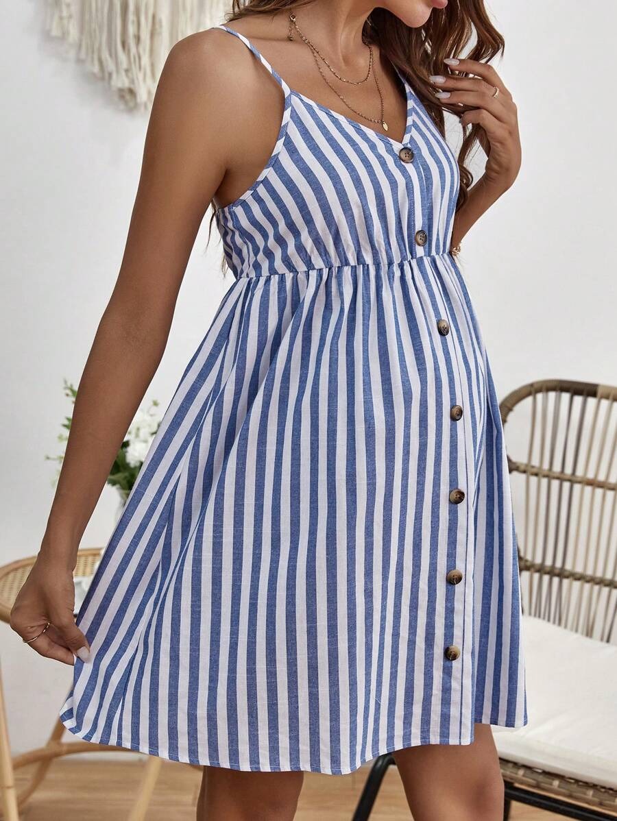 Maternity Striped Button-Front Cami Dress