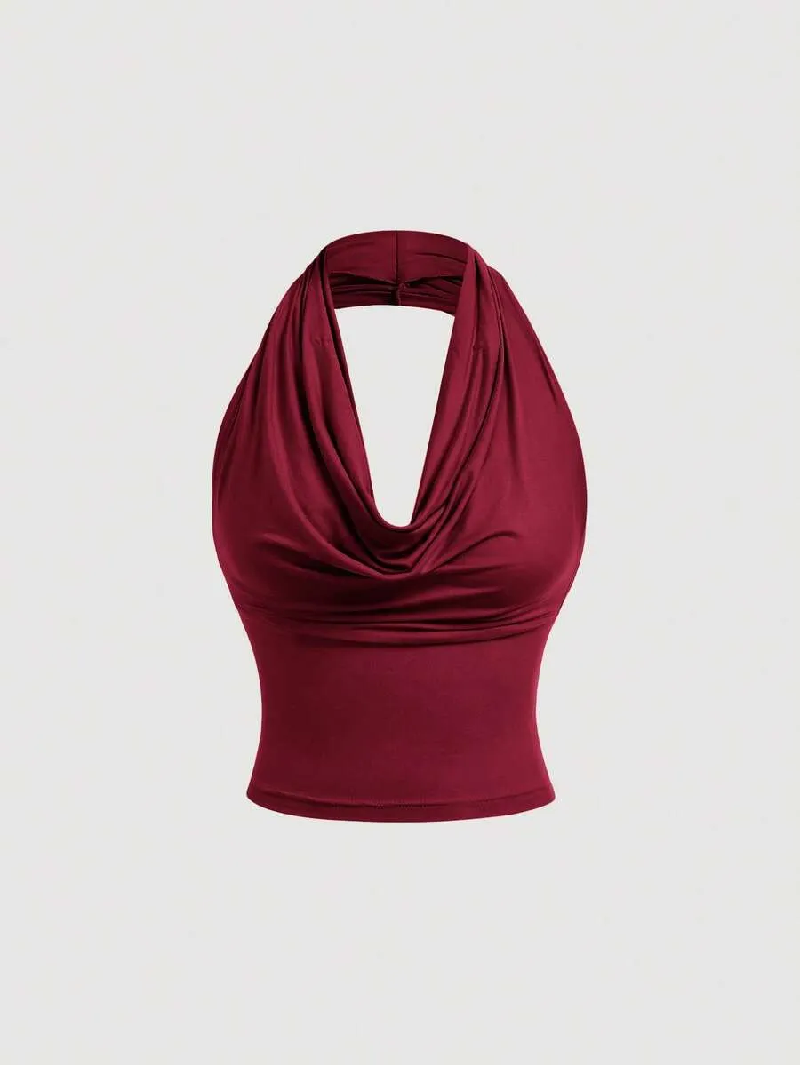 MOD Women’s Elegant Solid Color Versatile Halter Neck Top, Summer