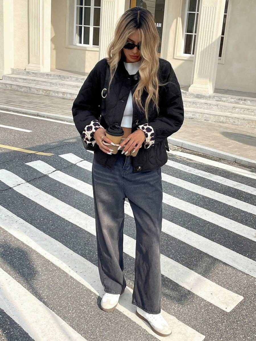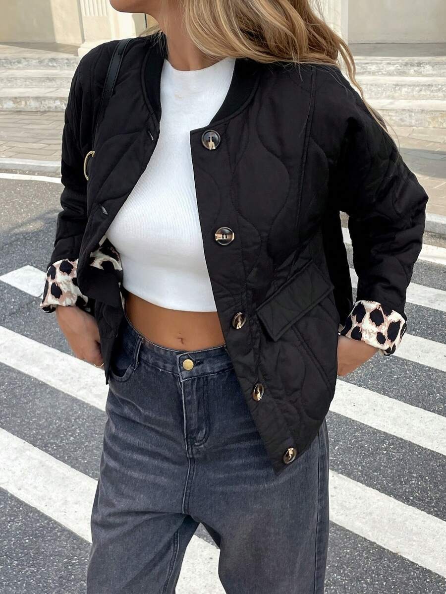 Be the first to review “Patchwork Leopard Print Quilted Coat”