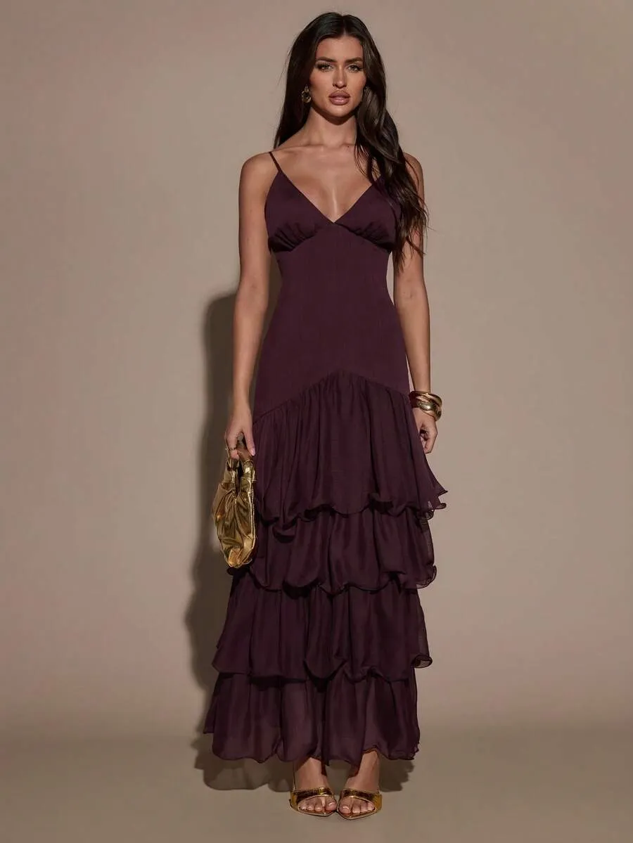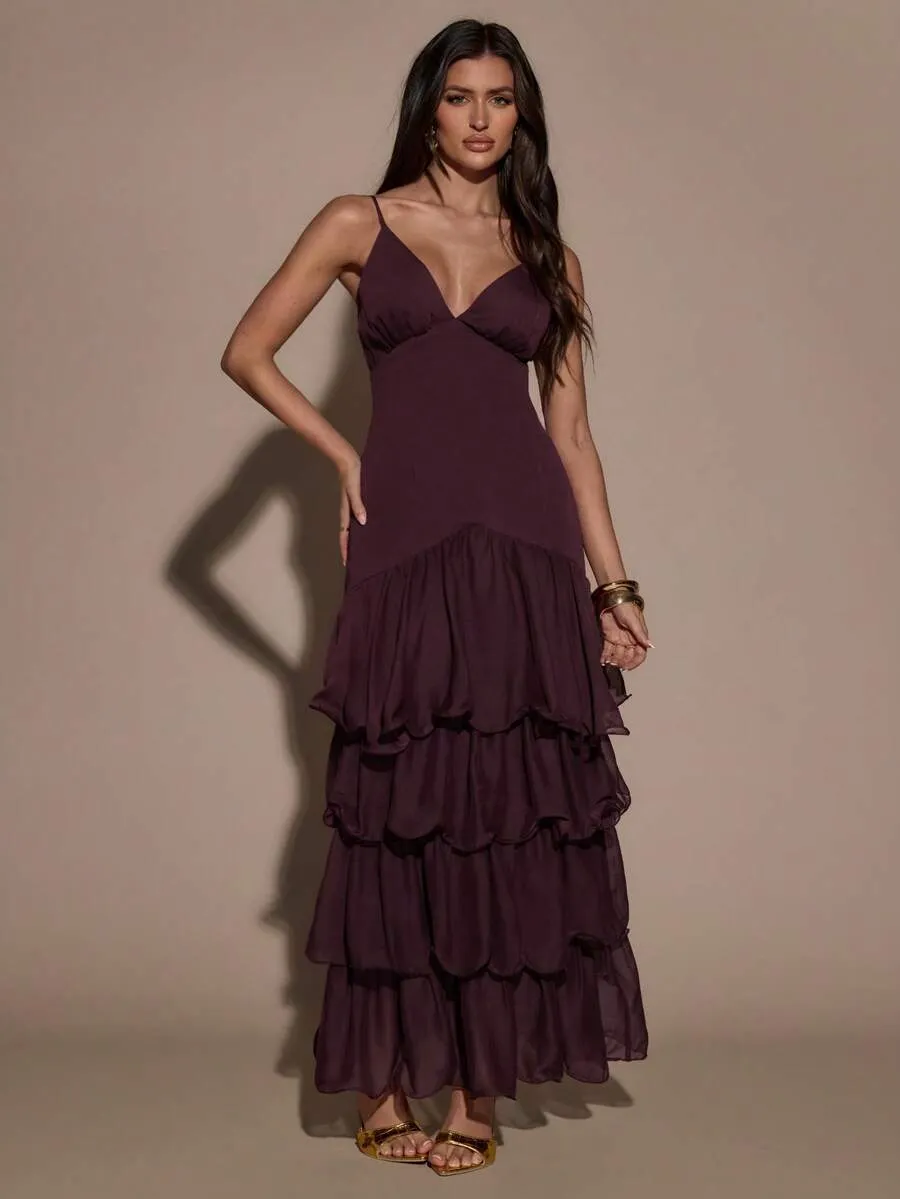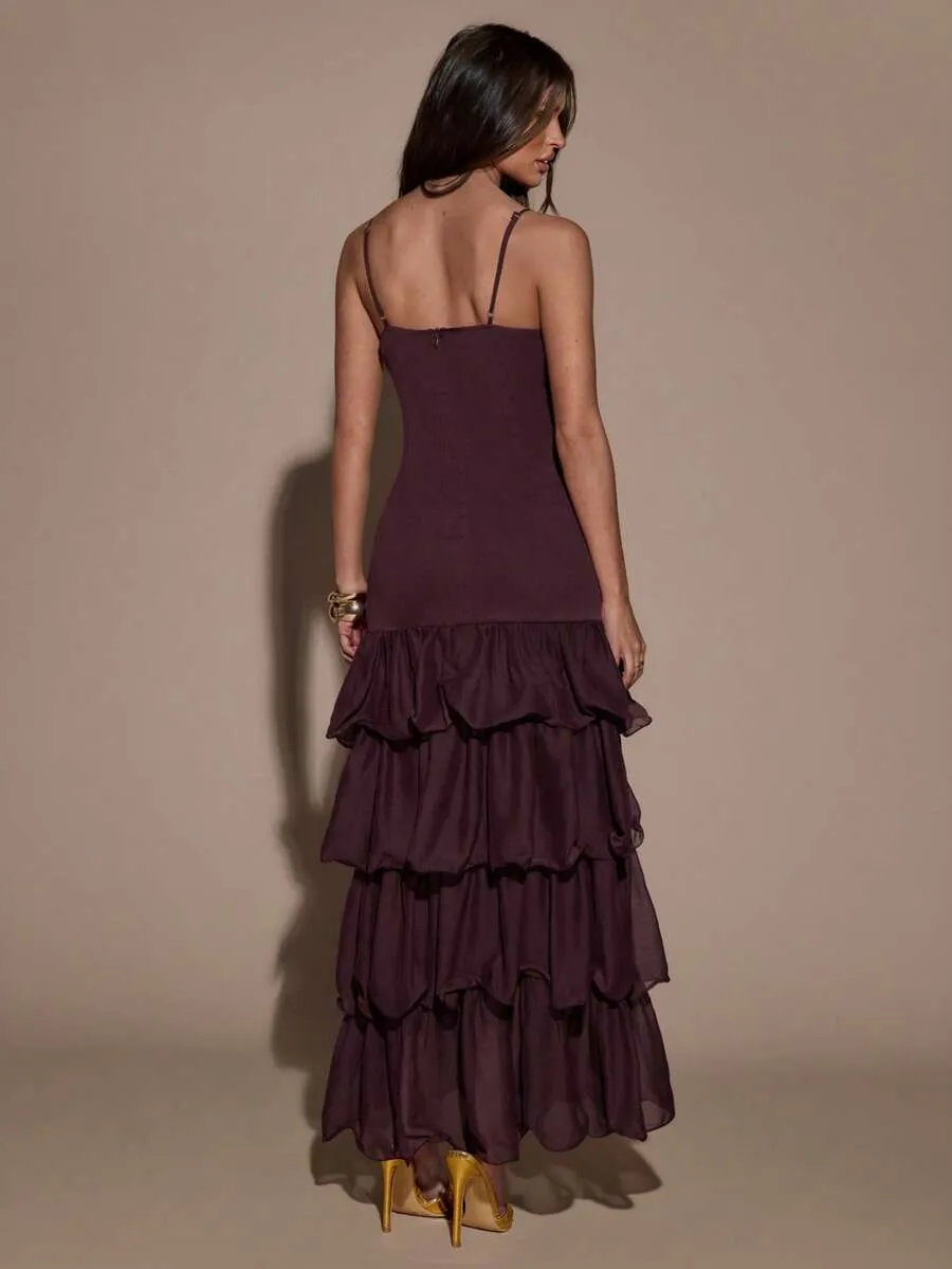 SHEIN BAE Women’s Elegant Solid-Color Party Dress with Ruffle Hem and Spaghetti Straps