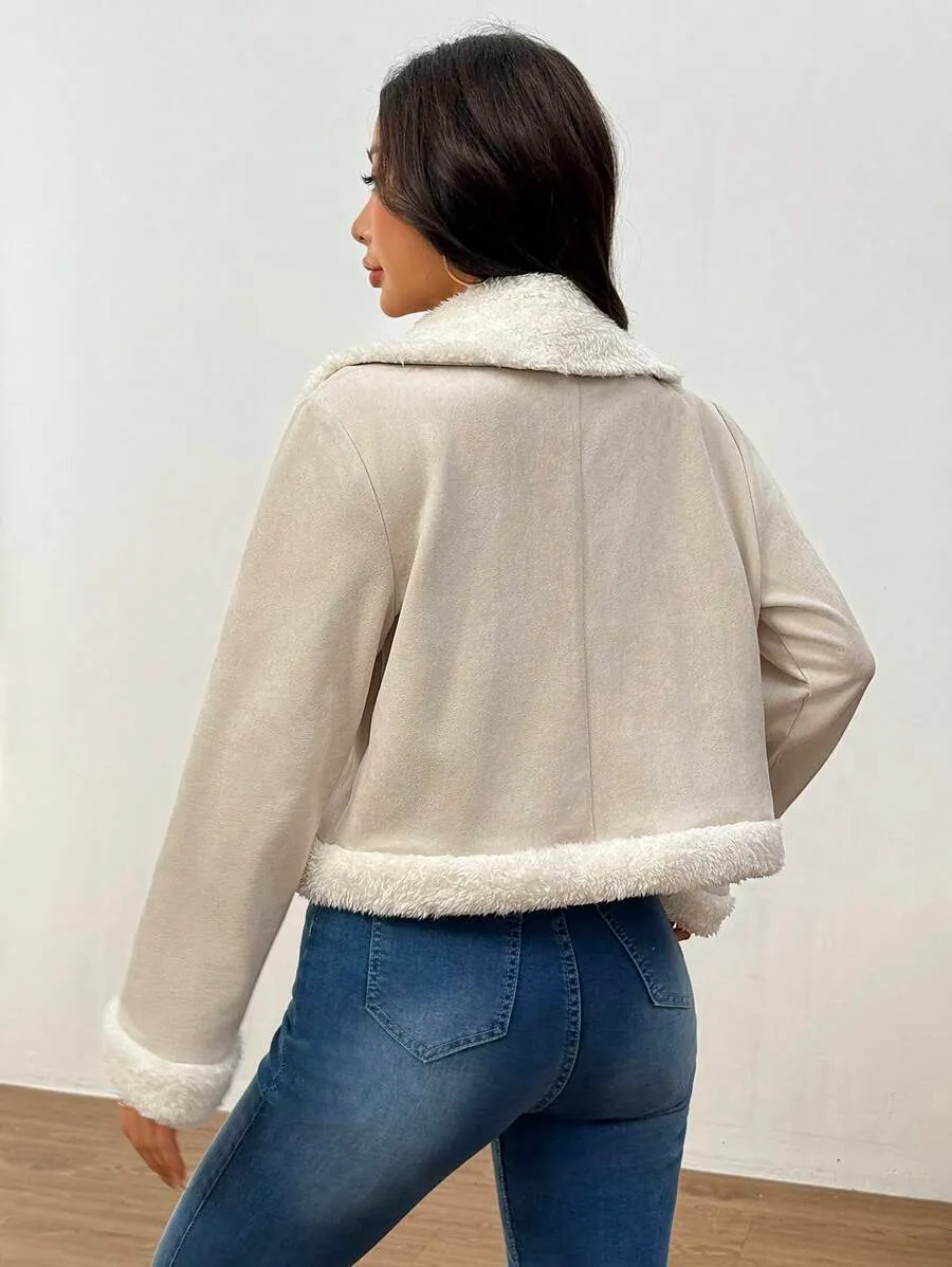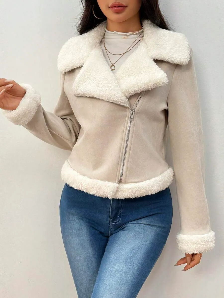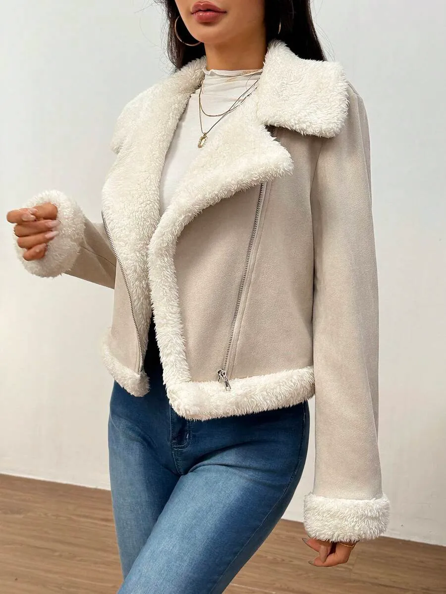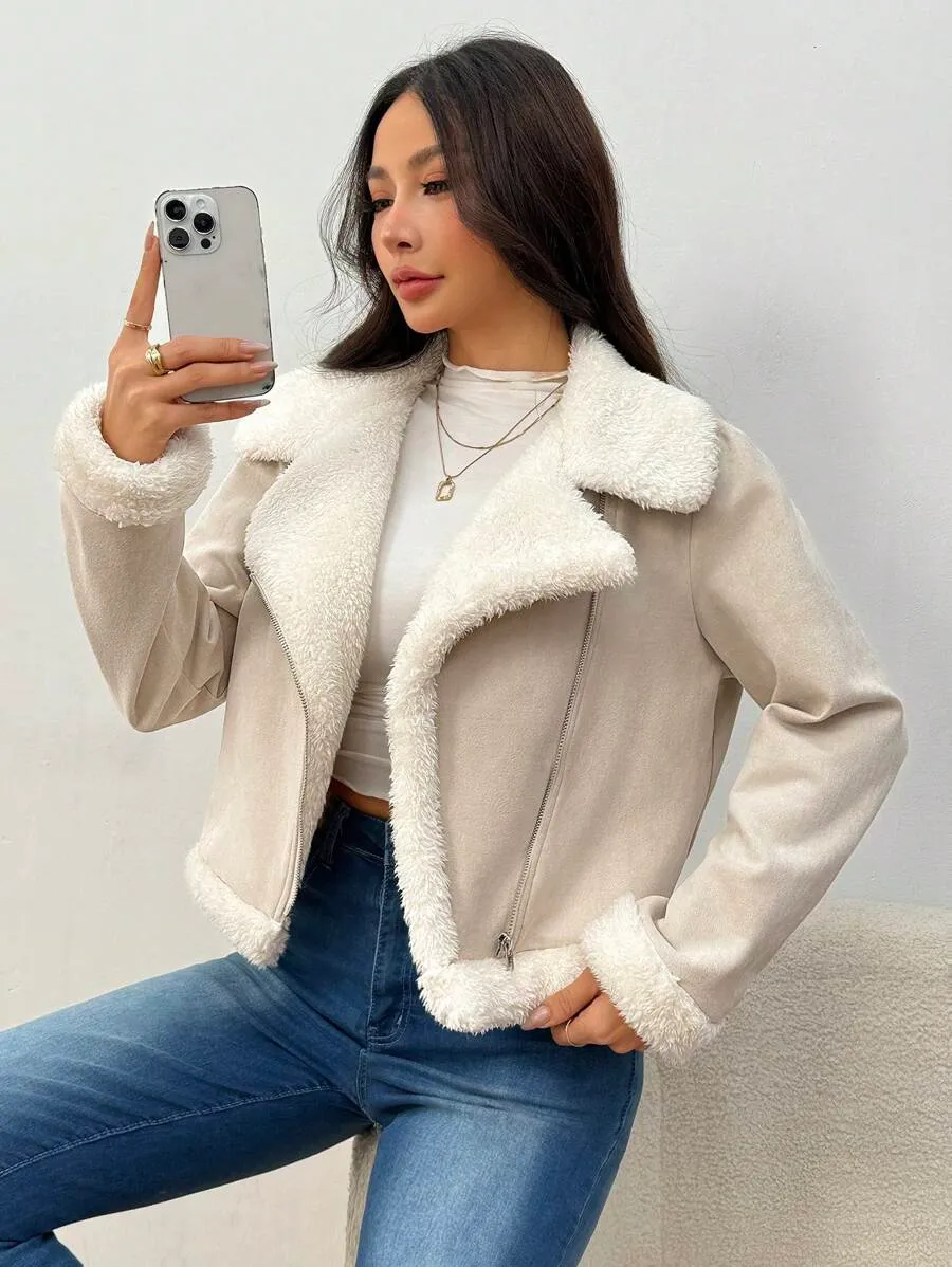 SHEIN EZwear Women’s Teddy Lined Moto Jacket