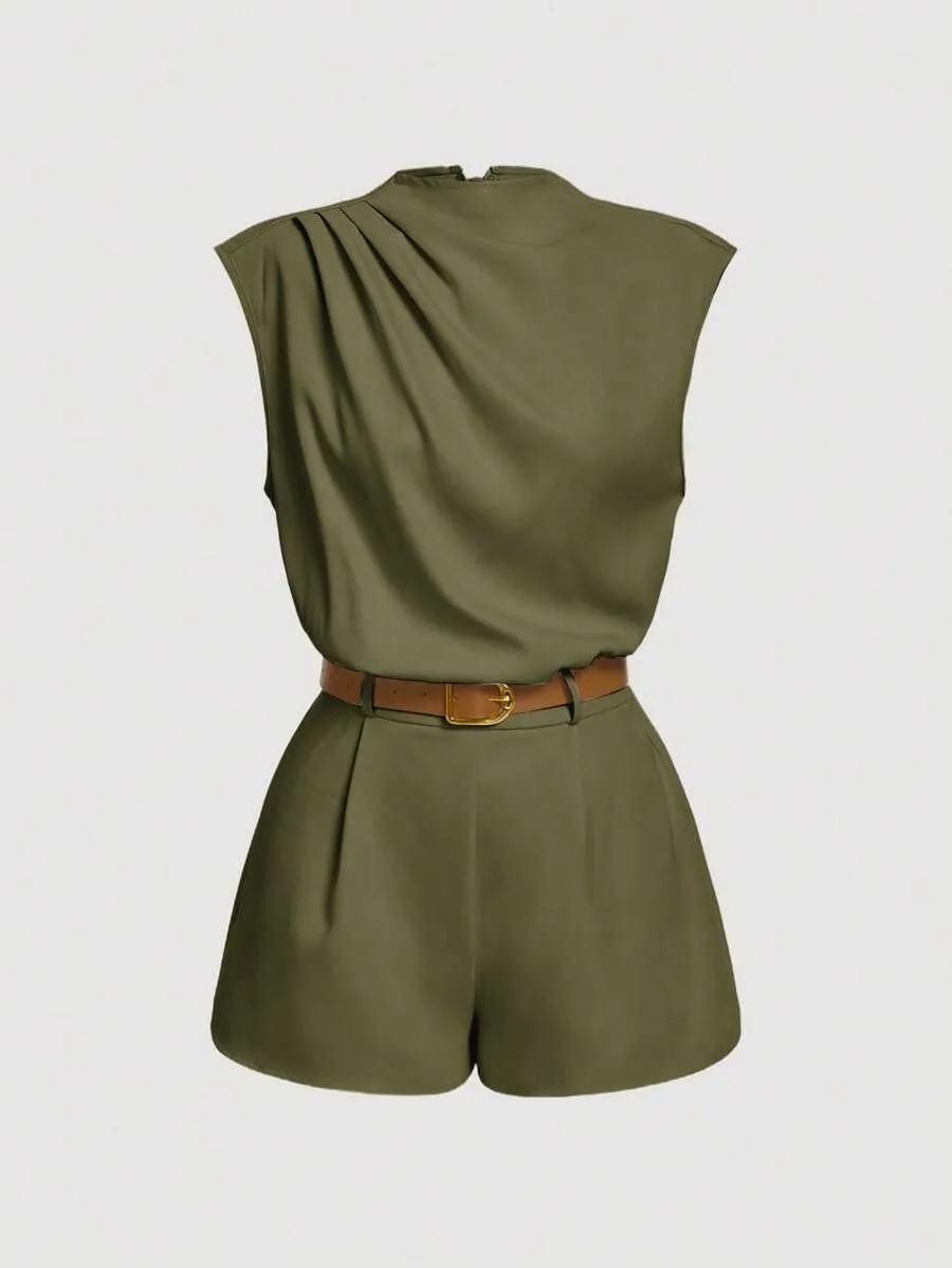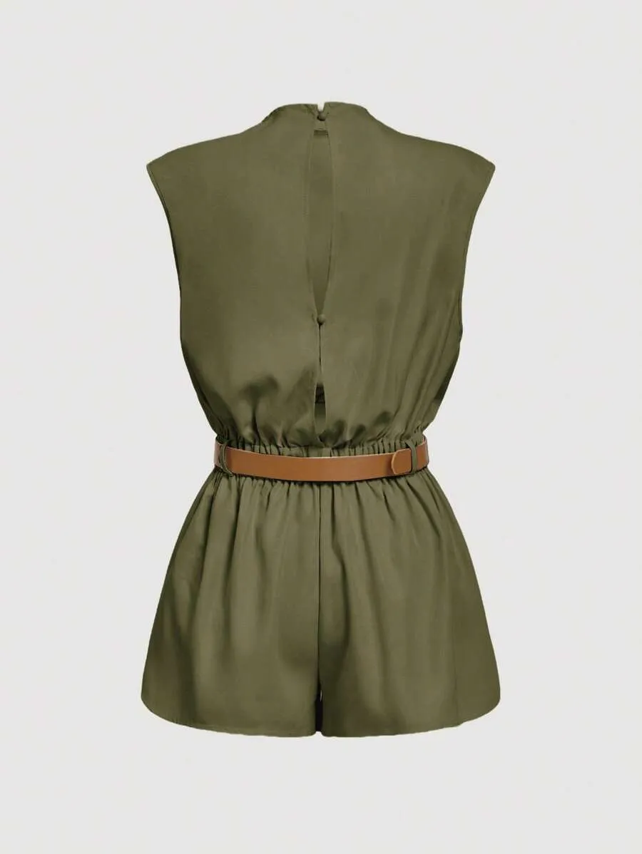 SHEIN Women’s High Neck Solid Pocket Belted Jumpsuit