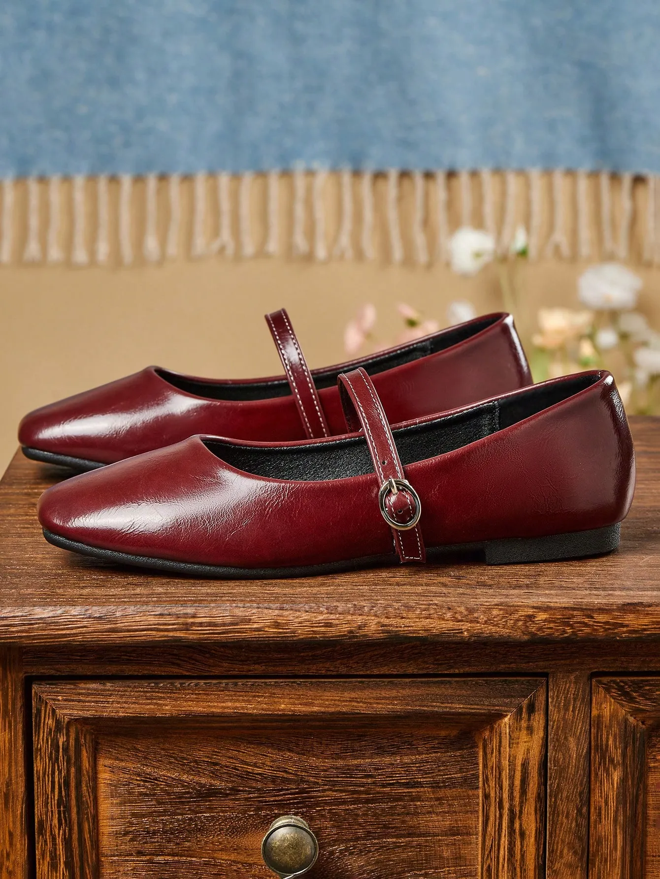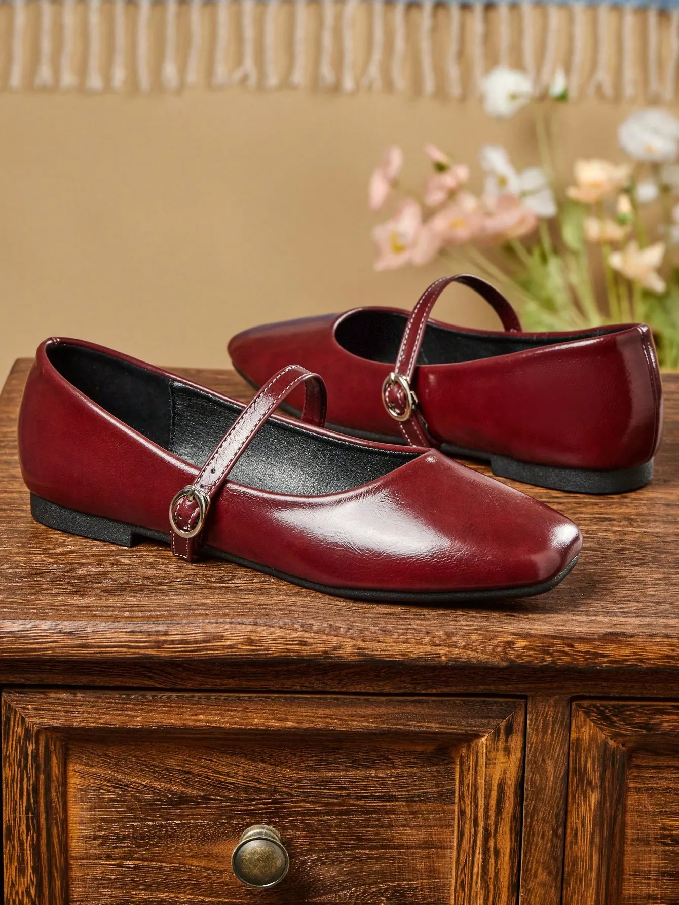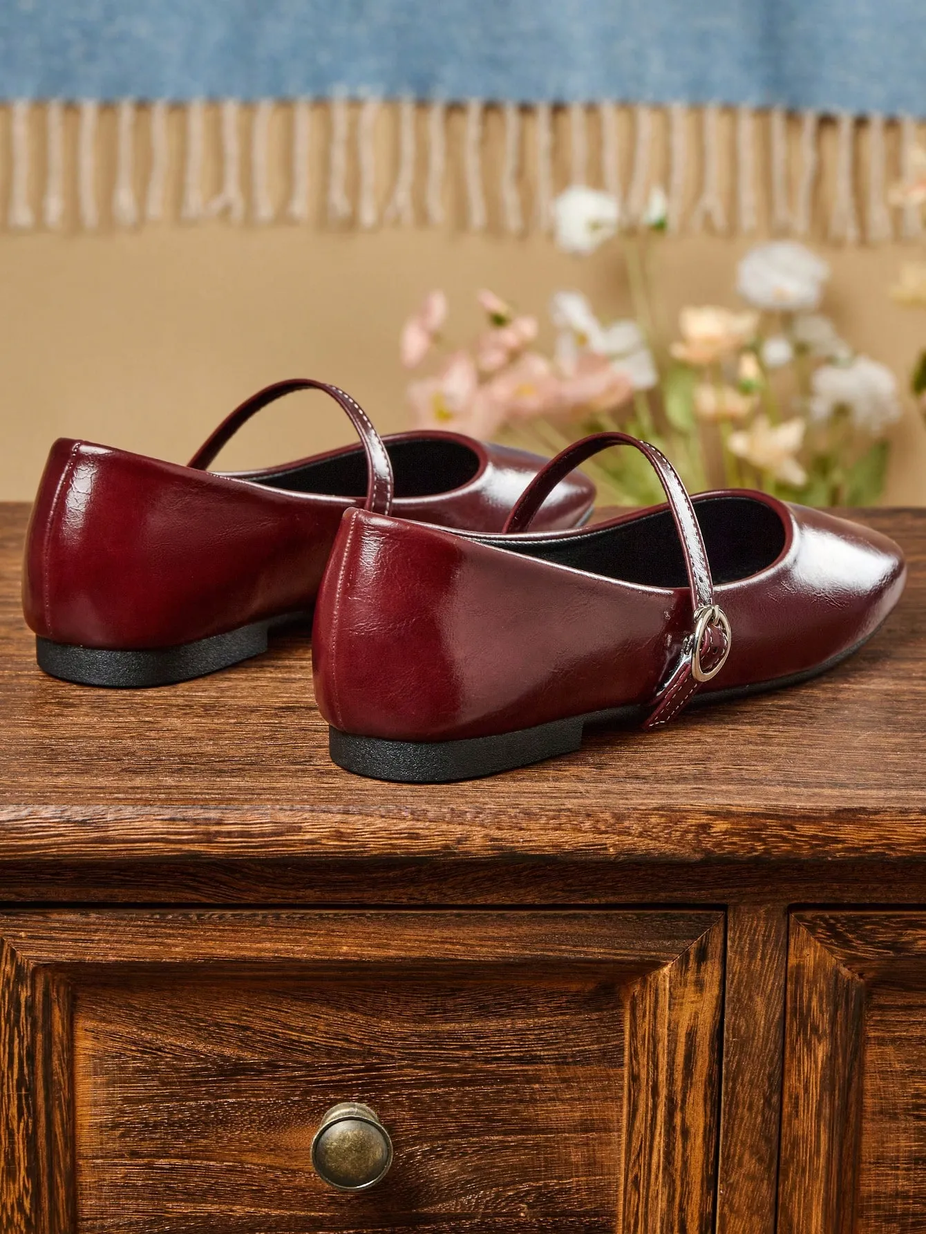 Be the first to review “Square-Toe Ballet Flats (Wine Red)”