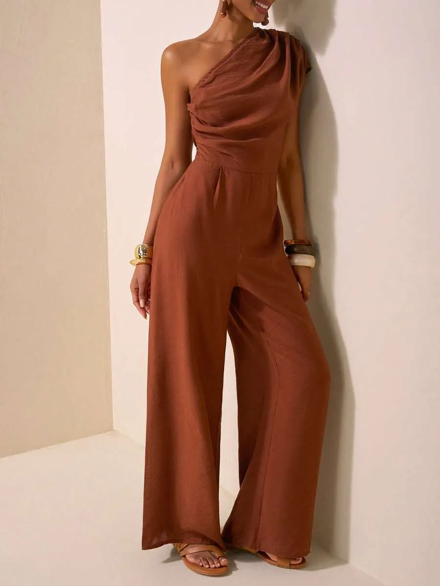 Zivah Brown Sleeveless Asymmetric Linen Jumpsuit